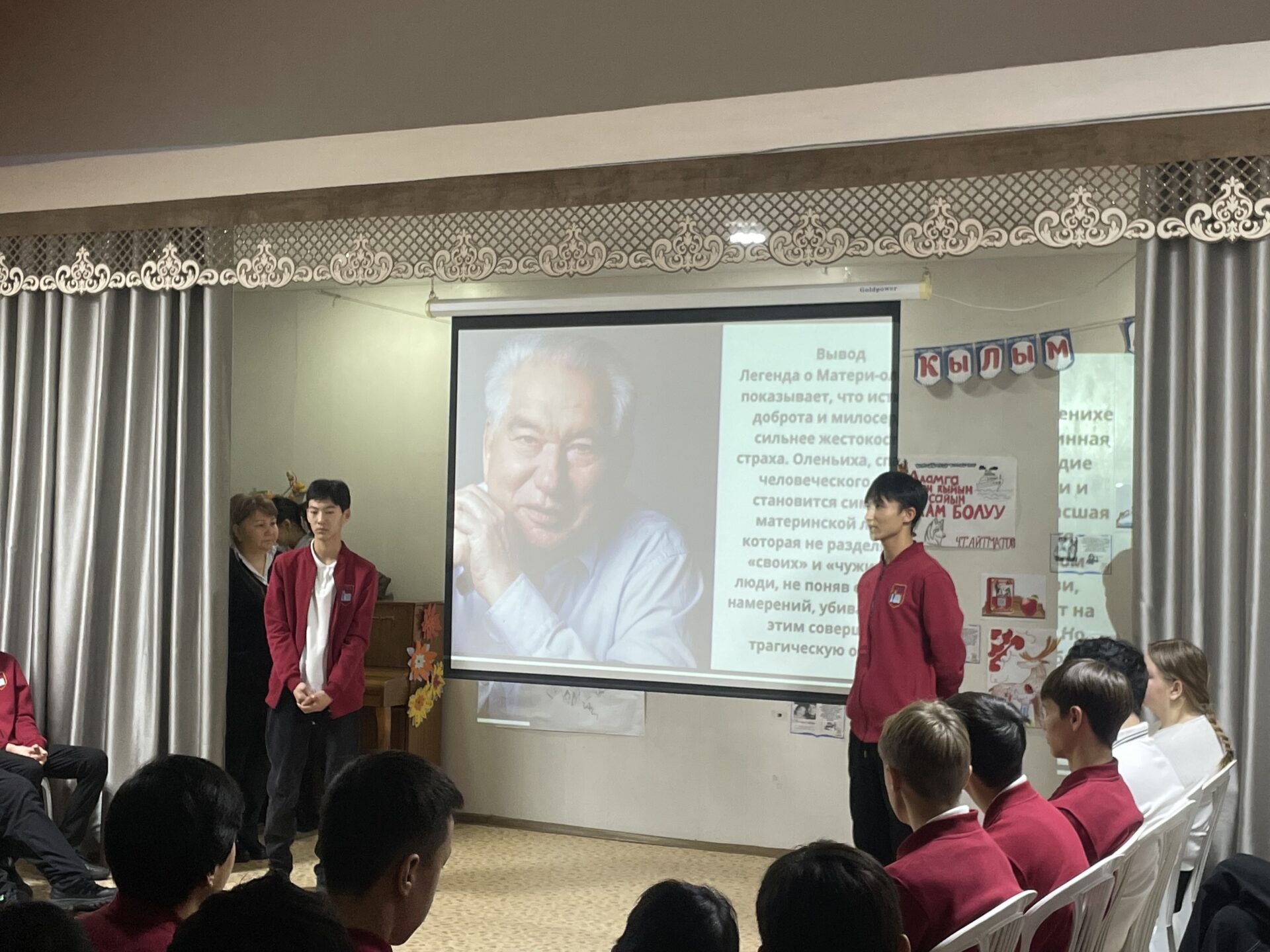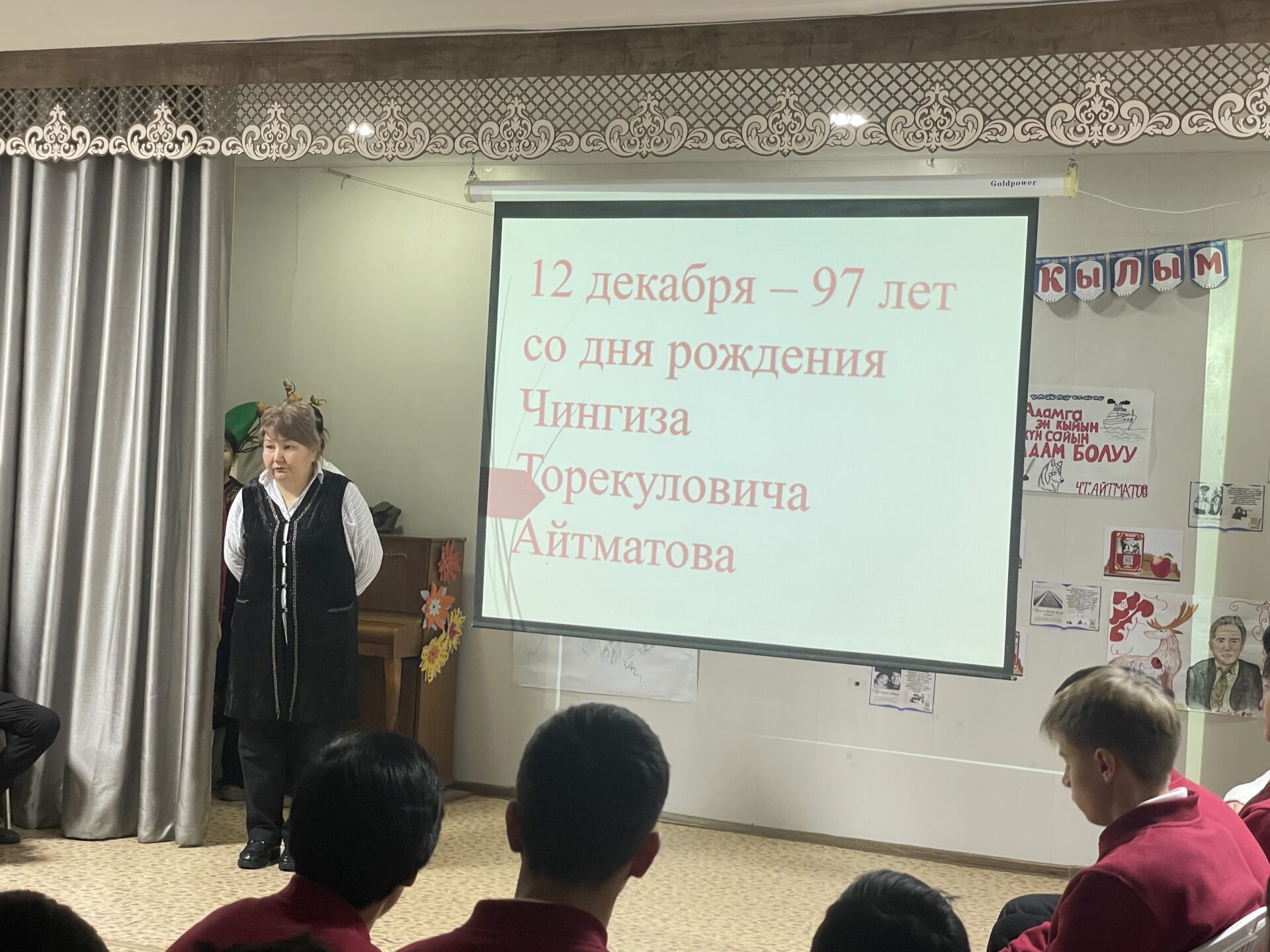 В школе прошла торжественная линейка, посвященная дню рождения великого кыргызского писателя Ч.Айтматова.